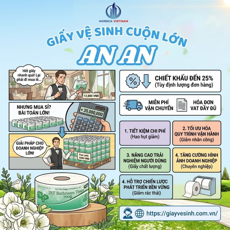 Nếu bạn là quản lý thu mua đang chật vật tìm kiếm nguồn cung ứng giấy vệ sinh An An sỉ uy tín, Horeca Việt Nam chính là giải pháp dứt điểm mọi nỗi lo. Chúng tôi không chỉ bán một cuộn giấy, chúng tôi cung cấp một hệ sinh thái tiêu hao chuyên nghiệp.