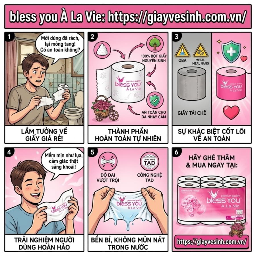 Nhiều người có một lầm tưởng chết người: “Giấy vệ sinh nào cũng giống nhau, cứ rẻ là mua, càng trắng càng sạch”. Đây là một thiên kiến nhận thức vô cùng sai lầm. Giấy quá trắng thường chứa đầy hóa chất tẩy quang học (OBA), trong khi giấy quá rẻ thường làm từ bột giấy tái chế bẩn. Đó là lý do tại sao Bless You, dù không phải là thương hiệu rẻ nhất thị trường, lại luôn là sự lựa chọn hàng đầu của những người tiêu dùng thông thái và các doanh nghiệp khắt khe.