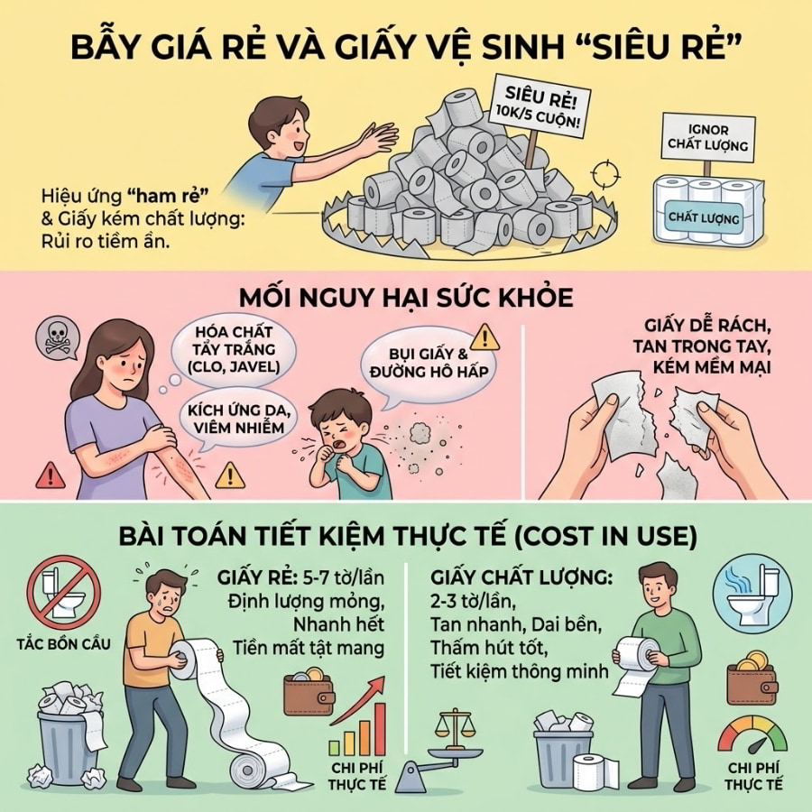 Vì sao không nên chỉ nhìn vào giá giấy vệ sinh siêu rẻ?