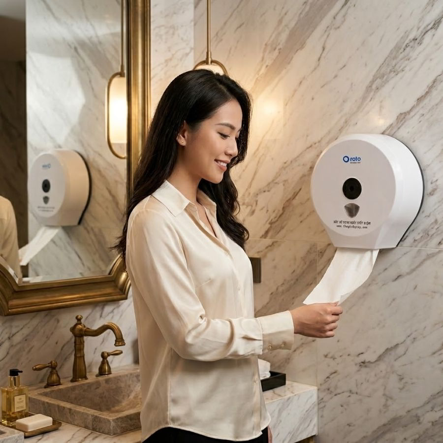 Hơn thế nữa, một sai lầm chết người mà nhiều chủ nhà hàng mắc phải là áp dụng thói quen tiêu dùng cá nhân vào vận hành doanh nghiệp. Việc sử dụng những cuộn giấy vệ sinh nhỏ truyền thống trong không gian công cộng có lưu lượng người qua lại dày đặc chẳng khác nào “muối bỏ bể”. Tuổi thọ của một cuộn giấy nhỏ kết thúc quá nhanh, buộc nhân viên tạp vụ phải túc trực và thay thế liên tục. Nếu nhân viên lơ là, khách hàng bước vào nhà vệ sinh và không thấy giấy, trải nghiệm dịch vụ sẽ ngay lập tức tụt dốc không phanh.