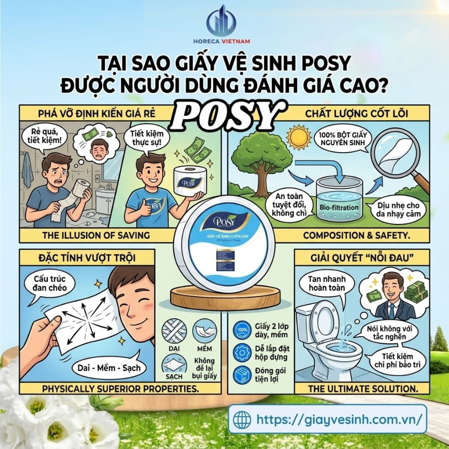 Bạn có bao giờ tự hỏi, đằng sau những cuộn giấy vệ sinh trắng mịn, êm ái mà chúng ta sử dụng hàng ngày tại các tòa nhà cao cấp hay khách sạn 5 sao là cả một câu chuyện dài về công nghệ và sự tận tâm? Trong ngành công nghiệp giấy tissue tại Việt Nam, sự xuất hiện của những sản phẩm kém chất lượng, chứa đầy hóa chất tẩy trắng đang là “nỗi đau” ngầm ảnh hưởng trực tiếp đến sức khỏe người dùng và chi phí vận hành của hàng ngàn doanh nghiệp. Giữa bối cảnh đó, Công ty giấy Xương Giang cùng thương hiệu Posy nổi lên như một chuẩn mực mới, định nghĩa lại chất lượng giấy vệ sinh Posy an toàn. Hãy cùng Horeca Việt Nam đi sâu vào lịch sử hình thành và giải mã lý do tại sao Posy lại trở thành cái tên được săn đón nhất trong giới B2B hiện nay.