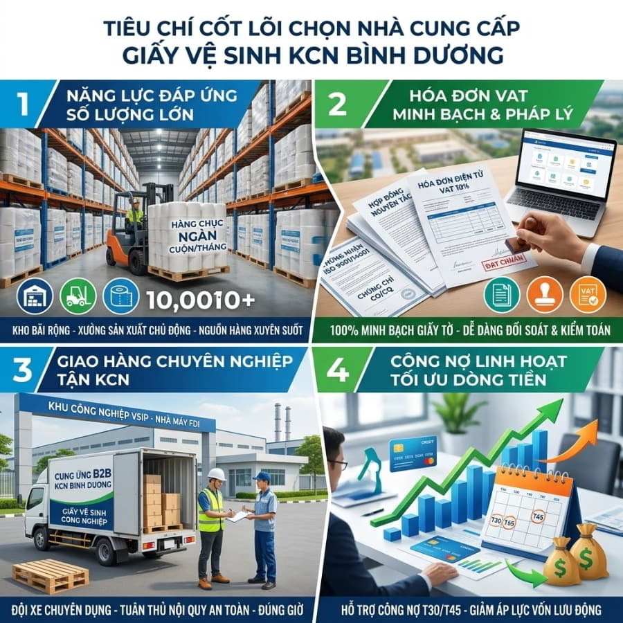 Đâu là tiêu chí cốt lõi khi chọn nhà cung cấp giấy vệ sinh KCN Bình Dương?