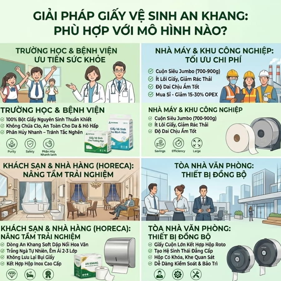 Giải Pháp Giấy Vệ Sinh An Khang Phù Hợp Với Mô Hình Nào?