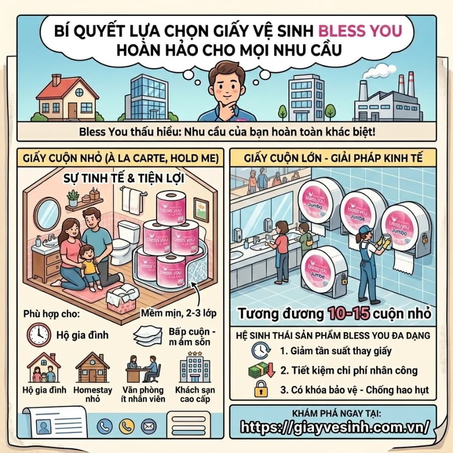 Giấy vệ sinh Bless You cuộn nhỏ dùng cho ai?