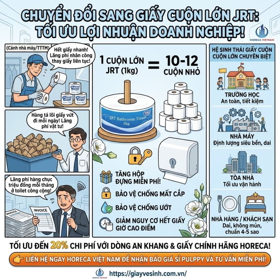 👉 Hành động ngay: Đừng để chi phí vật tư ăn mòn lợi nhuận của bạn. Liên hệ ngay với Horeca Việt Nam hôm nay để nhận báo giá sỉ Pulppy và nhận tư vấn lắp đặt hộp giấy cuộn lớn hoàn toàn miễn phí!