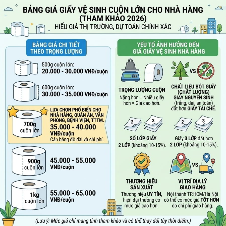 Giấy vệ sinh cuộn lớn có giá bao nhiêu năm 2026?