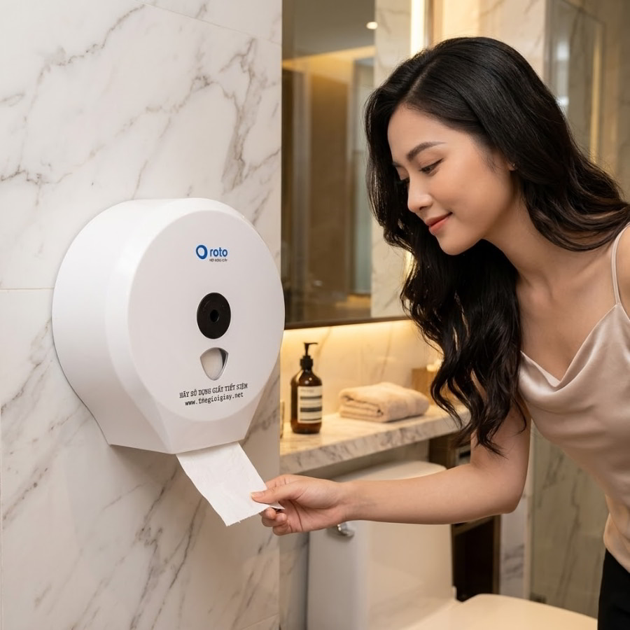 Không phải ngẫu nhiên mà các chuỗi F&B lớn lại đồng loạt loại bỏ giấy cuộn nhỏ ra khỏi khu vực vệ sinh của họ. Trong ngành dịch vụ ăn uống, nhà vệ sinh sạch sẽ và đầy đủ vật dụng là một phần của trải nghiệm khách hàng. Giấy cuộn lớn giúp chủ cơ sở chủ động về giấy sử dụng, tránh tình trạng hết giấy đột ngột gây phiền toái trong giờ cao điểm. Hãy tưởng tượng vào tối cuối tuần đông khách, việc nhân viên phải bỏ dở công việc phục vụ bàn chỉ để vào toilet thay giấy là một sự lãng phí nhân lực khổng lồ.