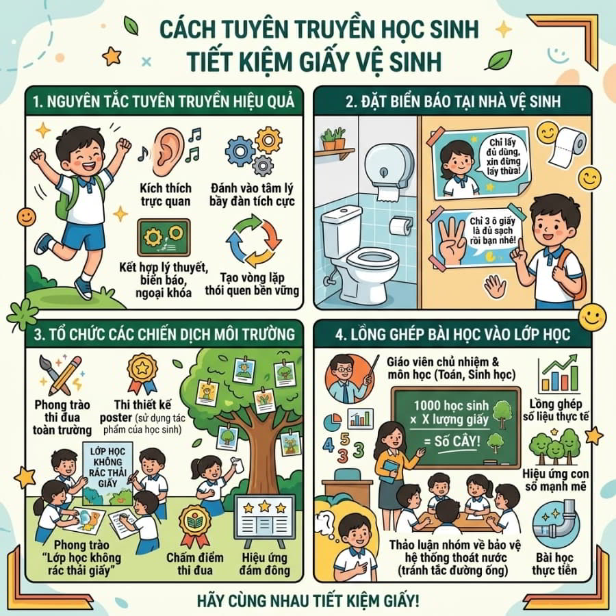 Làm sao để tuyên truyền học sinh tiết kiệm giấy vệ sinh?