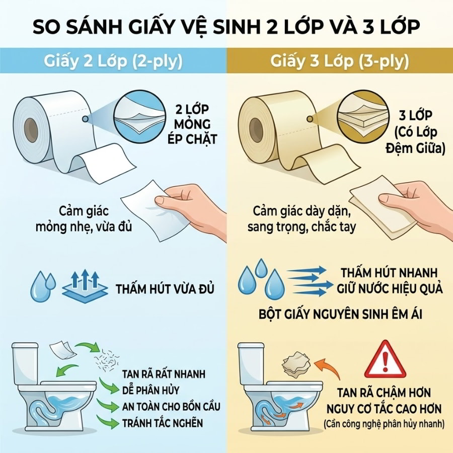 Sự khác biệt giữa giấy 2 lớp và 3 lớp là gì?