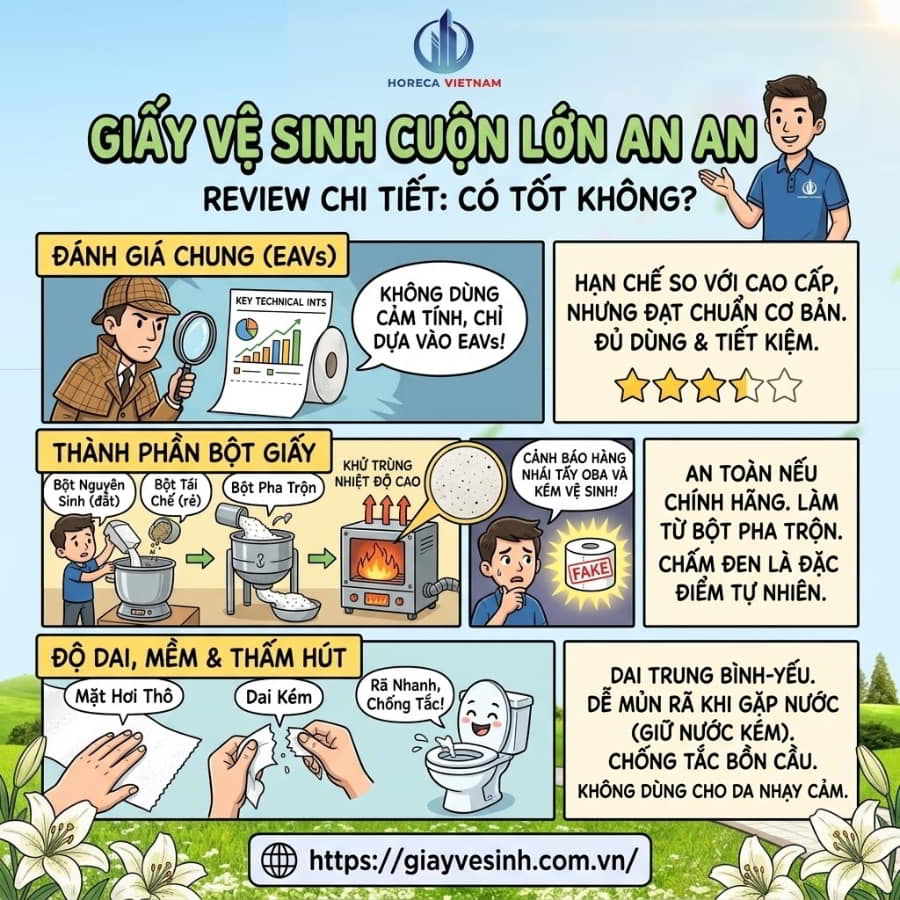 Bằng góc nhìn từ các chuyên gia ngành giấy với hơn 10 năm kinh nghiệm, bài viết này sẽ “bóc trần” chất lượng thực sự của giấy vệ sinh An An, phá vỡ những lầm tưởng tai hại và cung cấp cho bạn một bộ tiêu chuẩn chuẩn mực để bảo vệ sức khỏe gia đình cũng như tối ưu chi phí cho doanh nghiệp.