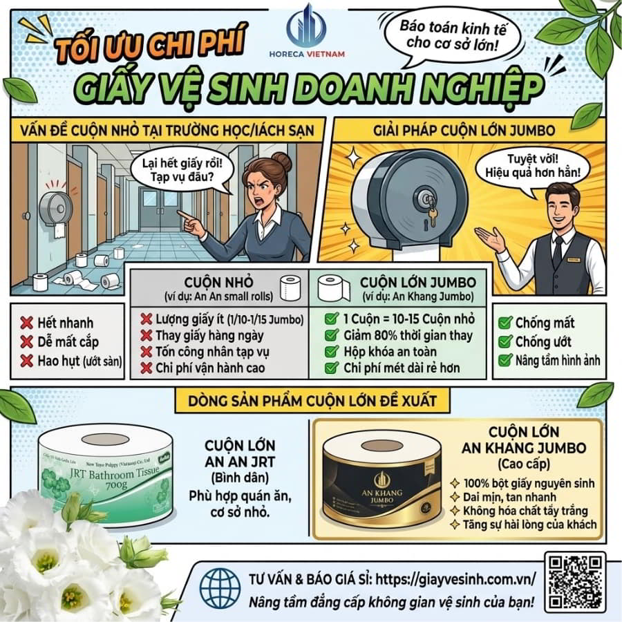 Với những phân tích chuyên sâu trên, hy vọng việc ra quyết định lựa chọn nguồn cung cấp giấy vệ sinh sẽ trở nên dễ dàng và an tâm hơn, giúp các chủ nhà hàng, khách sạn, trường học cũng như doanh nghiệp tối ưu hóa chi phí vận hành triệt để mà vẫn bảo vệ sức khỏe và xây dựng được hình ảnh chuyên nghiệp trong mắt khách hàng.