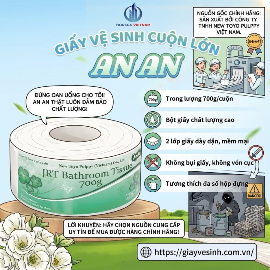 Để đánh giá một sản phẩm có tốt hay không, việc truy xuất nguồn gốc xuất xứ là yếu tố kiên quyết (theo tiêu chuẩn E-E-A-T). Giấy vệ sinh An An là một trong những thương hiệu giấy “quốc dân” có mặt từ rất sớm tại thị trường Việt Nam. Được sản xuất bởi Công ty Horeca Việt Nam – một đơn vị có tiếng trong ngành sản xuất giấy tissue, An An được định vị rõ ràng ở phân khúc bình dân, hướng tới đối tượng khách hàng đại chúng cần một giải pháp vệ sinh giá rẻ.