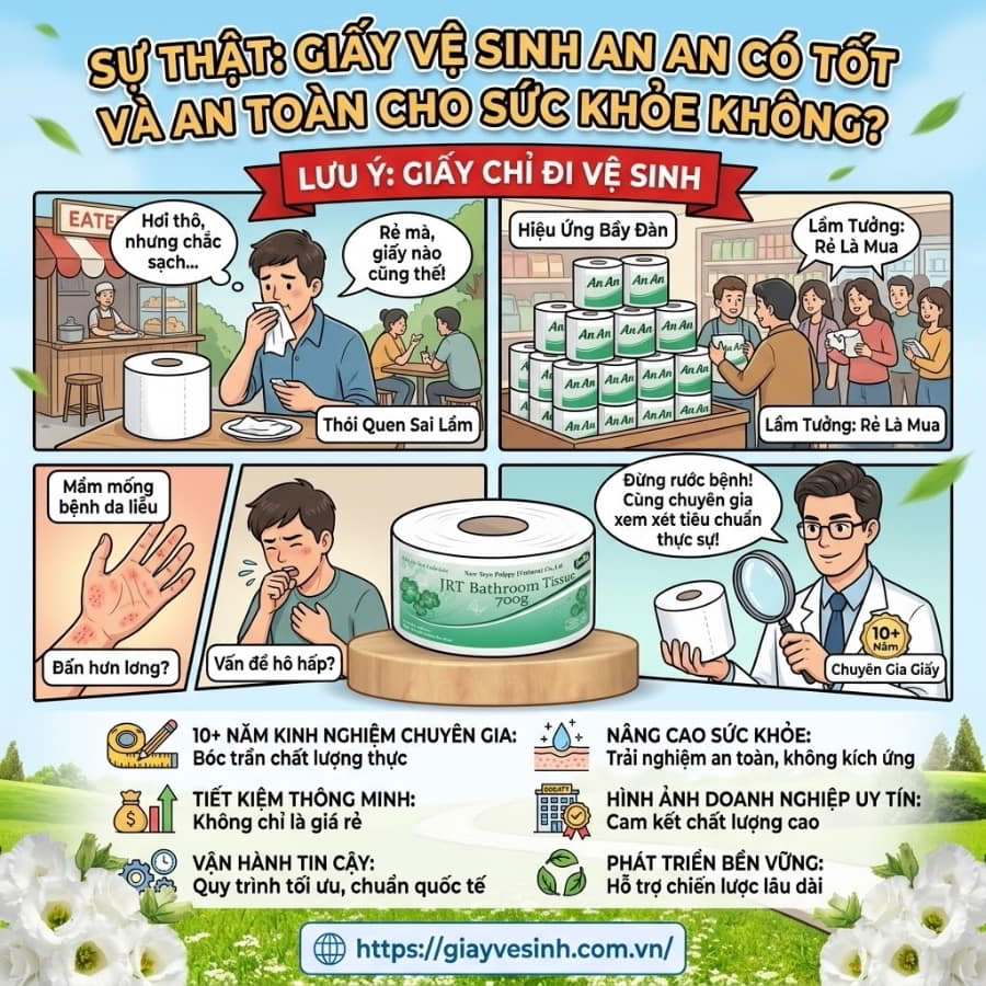 Tâm lý “rẻ thì mua”, “giấy nào cũng là giấy” (hiệu ứng bầy đàn) đã khiến hàng triệu người Việt vô tình rước bệnh vào người mà không hề hay biết. Sự thật đằng sau những cuộn giấy giá rẻ là gì? Giấy vệ sinh An An có tốt không, có thực sự an toàn cho làn da nhạy cảm của gia đình bạn, hay đó là mầm mống của những căn bệnh da liễu và hô hấp?