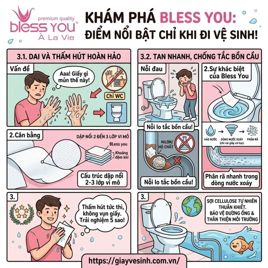 Bỏ qua những thông số kỹ thuật khô khan, trải nghiệm thực tế mới là thước đo chính xác nhất cho câu hỏi giấy vệ sinh Bless You có tốt không.