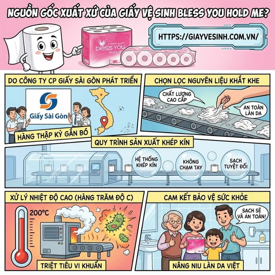 Trước khi đặt niềm tin vào bất kỳ sản phẩm tiếp xúc trực tiếp với làn da nào, việc truy xuất nguồn gốc là yếu tố kiên quyết. Giấy vệ sinh Bless You Hold Me là dòng sản phẩm cao cấp được nghiên cứu và phát triển bởi Công ty Cổ phần Giấy Sài Gòn – một trong những cánh chim đầu đàn của ngành công nghiệp giấy tại Việt Nam. Trải qua hàng thập kỷ gắn bó với người tiêu dùng Việt, Giấy Sài Gòn không ngừng cải tiến công nghệ để mang đến những sản phẩm đạt tiêu chuẩn quốc tế.