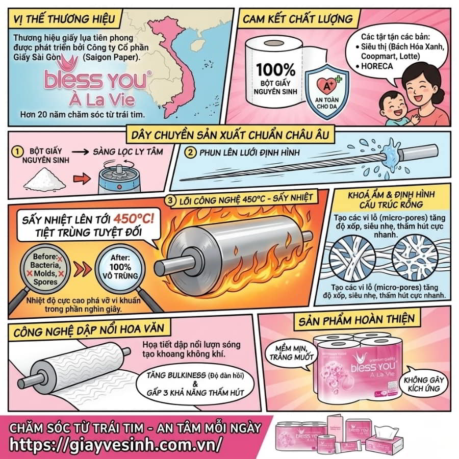 Sự ra đời của dòng sản phẩm Bless You vào những năm đầu của thế kỷ 21 đã đánh dấu một bước ngoặt mang tính lịch sử trong việc định hình lại thói quen và nâng tầm tiêu chuẩn vệ sinh cá nhân của người Việt. Trước đó, thị trường tràn ngập các loại giấy cuộn gia công, giấy tái chế thô ráp, tối màu và tiềm ẩn vô số nguy cơ về sức khỏe. Bless You xuất hiện mang theo một triết lý hoàn toàn khác biệt: Giấy vệ sinh không chỉ để làm sạch, mà còn phải là một trải nghiệm chăm sóc cá nhân (Personal Care) an toàn, tinh tế và mang lại cảm giác được nâng niu.