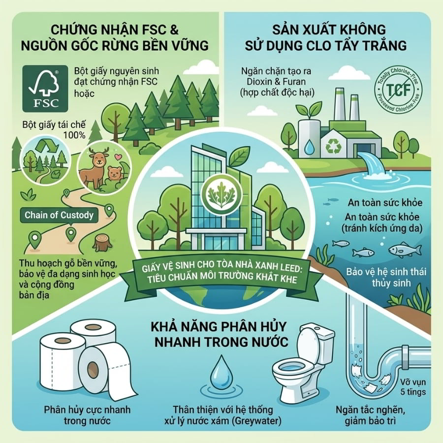Tại sao việc chọn giấy vệ sinh lại quyết định sự sống còn của chứng chỉ LEED trong tòa nhà?