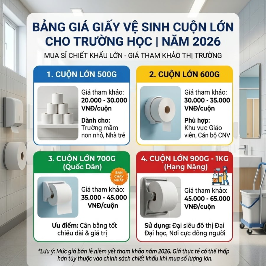 Bảng Giá Giấy Vệ Sinh Cuộn Lớn Cho Trường Học Mới Nhất Năm 2026 Là Bao Nhiêu?