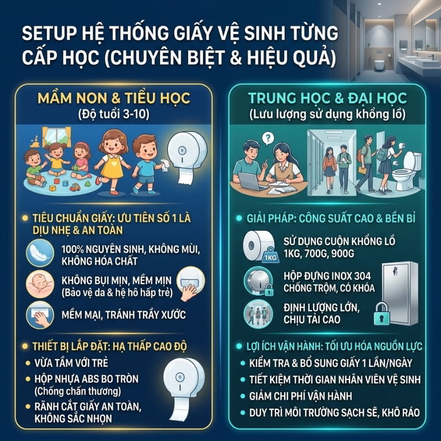 Kinh Nghiệm Setup Hệ Thống Giấy Vệ Sinh Dựa Trên Từng Cấp Học Như Thế Nào?