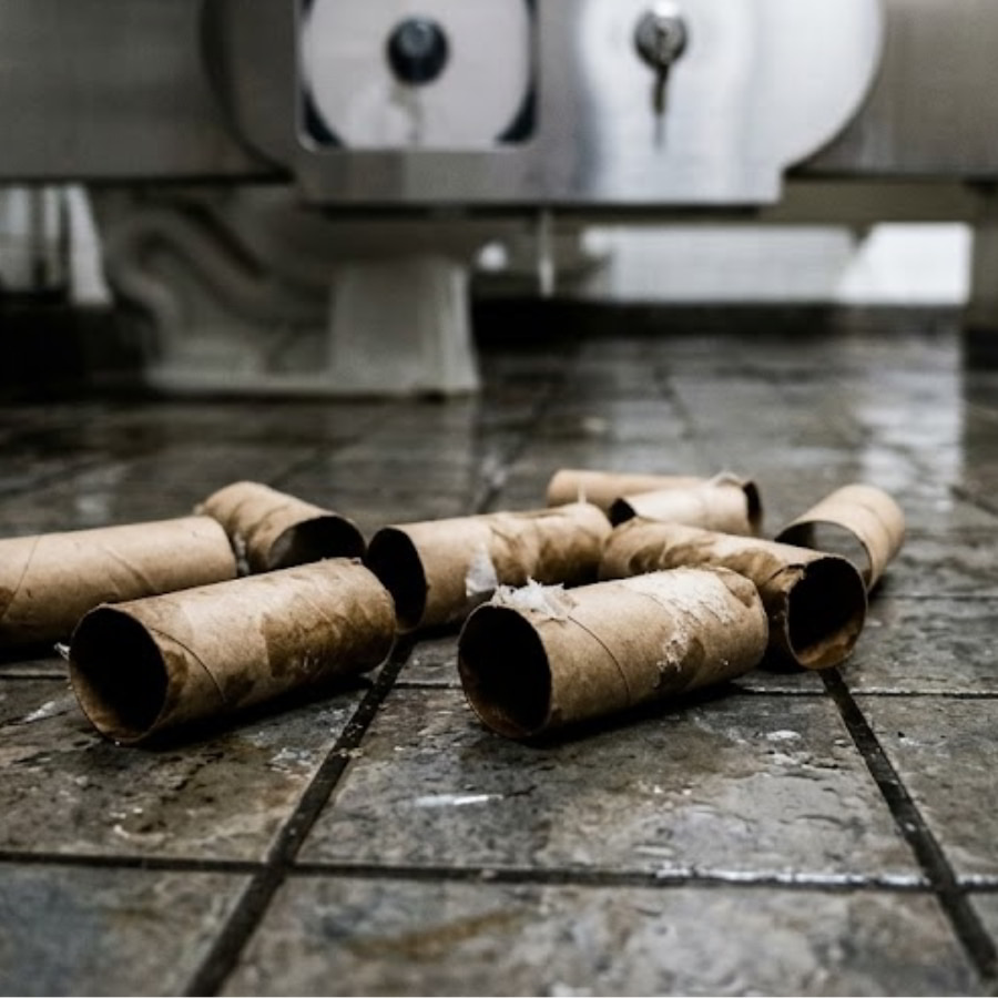 Tiếng chuông báo giờ ra chơi vừa dứt, hàng trăm học sinh từ các lớp học đồng loạt ùa ra hành lang. Chỉ trong vòng 15 phút ngắn ngủi của giờ nghỉ, khu vực nhà vệ sinh trở thành nơi có mật độ qua lại dày đặc nhất, chịu áp lực vận hành khổng lồ. Và hậu quả để lại sau đó là gì? Những lõi giấy vệ sinh cuộn nhỏ vứt lăn lóc trên sàn nhà ướt nhẹp, những cuộn giấy bị kéo tung tóe kéo dài từ buồng vệ sinh ra tận bồn rửa tay, và tồi tệ hơn cả là những cục giấy vụn khổng lồ bị nhét cứng vào bồn cầu khiến toàn bộ hệ thống ống xả tê liệt, nước tràn lênh láng.