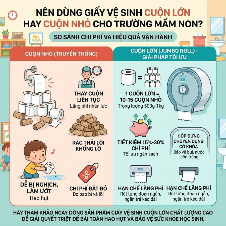 Giấy vệ sinh cuộn nhỏ có phù hợp với trường mầm non không?