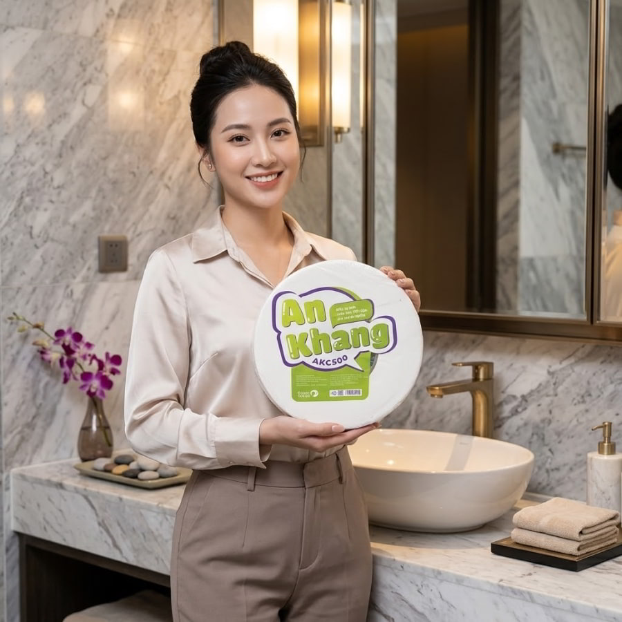 Các dòng giấy vệ sinh cuộn lớn cao cấp hiện nay đều được sản xuất từ bột giấy nguyên sinh đạt chuẩn, được kiểm định nghiêm ngặt về độ an toàn và khả năng tương thích với môi trường. Chúng được thiết kế để sở hữu đặc tính vô cùng quan trọng: phân hủy nhanh trong nước – thân thiện với hệ thống xử lý nước thải. Nhờ cấu trúc liên kết sợi xenluloza (cellulose) đặc biệt, giấy có độ mềm mịn, dai khi sử dụng nhưng lại nhanh chóng rã ra khi tiếp xúc với dòng nước xả của bồn cầu. Điều này giúp loại bỏ hoàn toàn tình trạng tắc nghẽn, một vấn đề vốn gây tốn kém hàng chục triệu đồng chi phí sửa chữa và thông tắc mỗi năm cho các doanh nghiệp. Nó khiến giấy cuộn lớn đặc biệt được tin dùng tại bệnh viện, trường học, nhà hàng cao cấp, khu resort, văn phòng đạt chuẩn ISO.