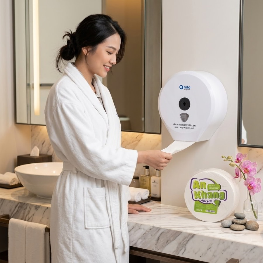 Bạn có bao giờ tự hỏi, đằng sau sự hào nhoáng và sạch sẽ của những tòa nhà văn phòng hạng A, các trung tâm thương mại sầm uất hay chuỗi khách sạn 5 sao, đội ngũ vận hành phải đối mặt với những “cơn ác mộng” thầm lặng nào không? Hàng ngàn cuộn giấy vệ sinh hết sạch chỉ trong vài giờ đồng hồ, nhân viên vệ sinh phải chạy đôn chạy đáo thay mới liên tục, và hệ quả là hàng núi rác thải từ những chiếc lõi giấy carton cứng ngắc chất đống mỗi ngày. Đó là một bài toán vận hành tiêu tốn hàng trăm triệu đồng mỗi năm và đi ngược lại hoàn toàn với xu hướng phát triển bền vững.