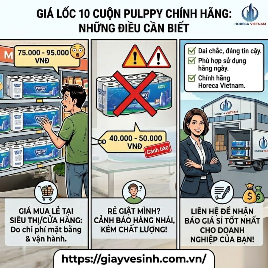 Nếu bạn đã thấm thía nỗi đau của việc mua phải hàng giả hoặc mệt mỏi với các nhà cung cấp nhỏ lẻ liên tục báo hết hàng, đứt gãy chuỗi cung ứng, thì đây là lúc bạn cần một đối tác chiến lược. Horeca Việt Nam tự hào là đơn vị phân phối trực tiếp các dòng sản phẩm giấy vệ sinh Pulppy cao cấp, bao gồm lốc 10 cuộn Pulppy, đáp ứng mọi nhu cầu khắt khe nhất của thị trường. Chúng tôi không chỉ bán một cuộn giấy, chúng tôi cung cấp giải pháp vệ sinh toàn diện giúp doanh nghiệp của bạn tối ưu hóa dòng tiền và nâng tầm hình ảnh thương hiệu trong mắt khách hàng.