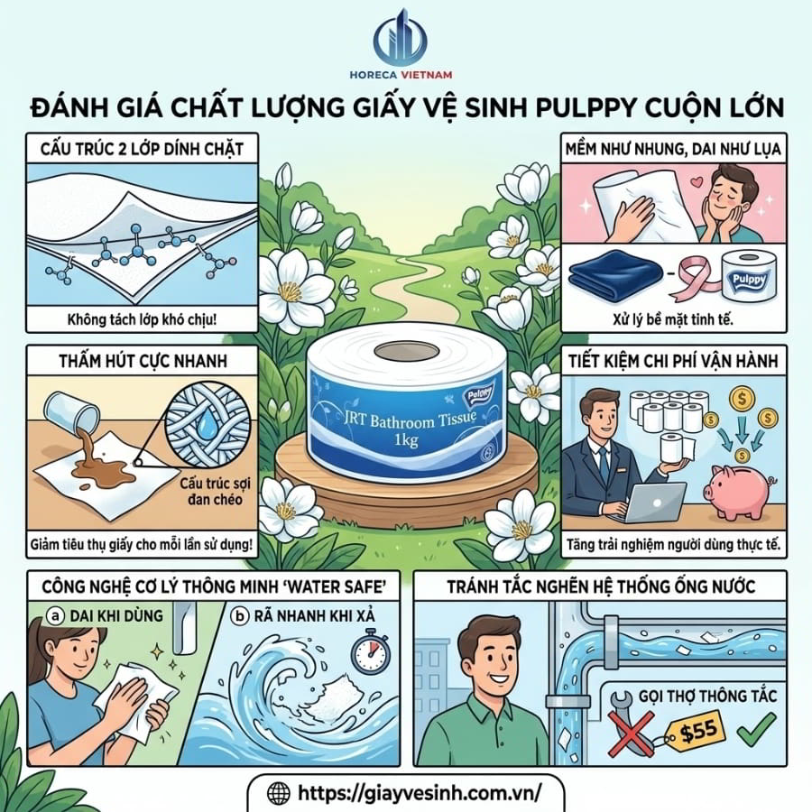 Với những phân tích chuyên sâu về chất lượng vượt trội của giấy vệ sinh Pulppy xanh cùng bài toán tối ưu chi phí thông minh từ việc chuyển đổi sang dùng giấy cuộn lớn ở trên, hy vọng quyết định lựa chọn vật tư tiêu hao của bạn sẽ trở nên dễ dàng và chuẩn xác hơn bao giờ hết. Sự chuyển đổi này không chỉ giúp các chủ doanh nghiệp, ban quản lý tòa nhà, nhà hàng, khách sạn mang đến trải nghiệm êm ái, an toàn tuyệt đối cho sức khỏe người dùng nhờ 100% bột giấy nguyên sinh, xóa bỏ triệt để nỗi ám ảnh tắc nghẽn bồn cầu, mà còn cắt giảm tối đa ngân sách vận hành, hạn chế hao hụt và tiết kiệm đáng kể thời gian quản lý vật tư dài hạn.