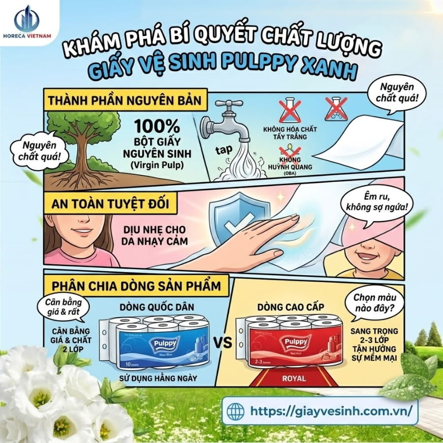 Tìm hiểu các dòng giấy vệ sinh pulppy xanh tại Horeca Việt Nam
