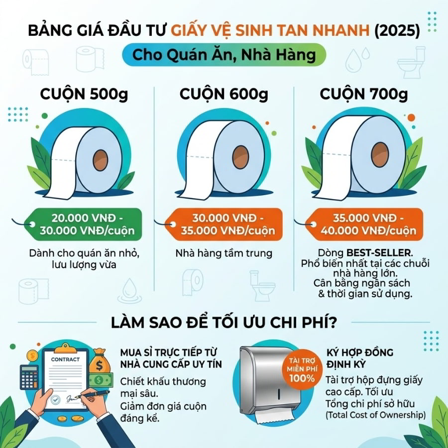 Bảng Giá Đầu Tư Giấy Vệ Sinh Tan Nhanh Cho Quán Ăn Hiện Nay Là Bao Nhiêu?