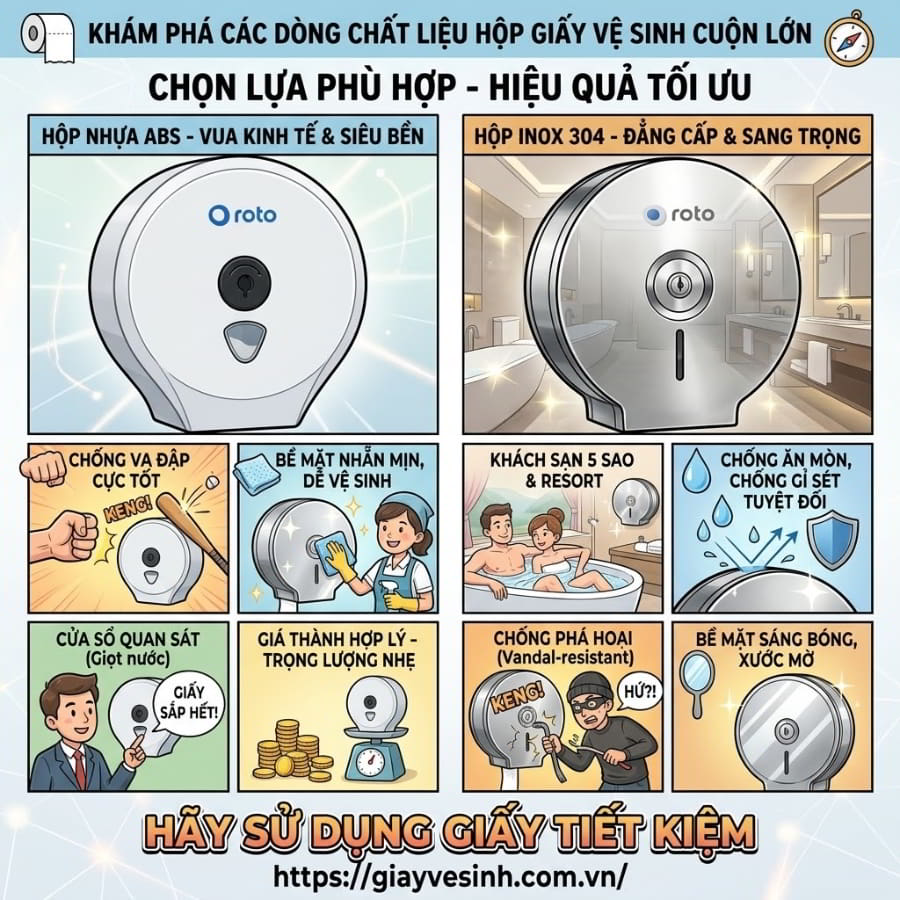 (Khám phá ngay các dòng chất liệu hộp đựng giấy vệ sinh cuộn lớn phổ biến nhất, đáp ứng mọi tiêu chuẩn khắt khe từ độ bền vật lý đến tính thẩm mỹ kiến trúc).