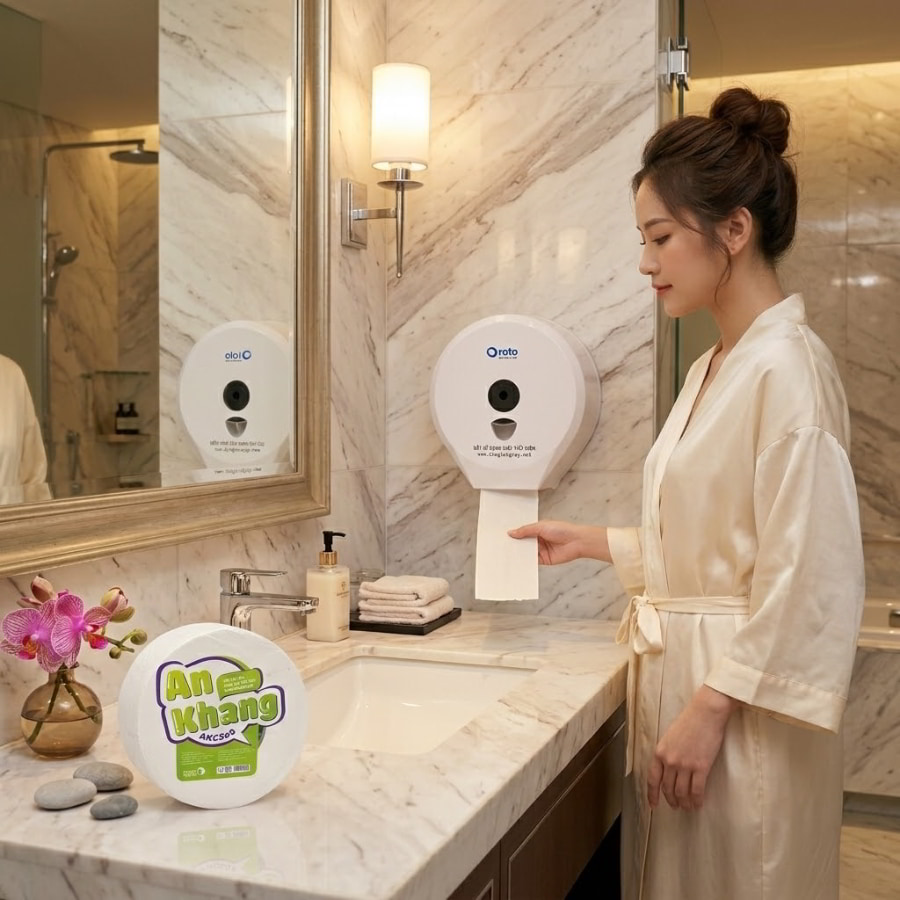 Sự thật là, việc thiết kế một không gian chuẩn mực với sự kết hợp hoàn hảo giữa giấy lau tay và giấy vệ sinh cuộn lớn sẽ trở nên vô nghĩa nếu bạn chọn sai nhà cung cấp vật tư. Những dòng giấy kém chất lượng, lẫn tạp chất, pha bột giấy tái chế rẻ tiền sẽ lập tức phá vỡ mọi quy chuẩn bạn vừa xây dựng.