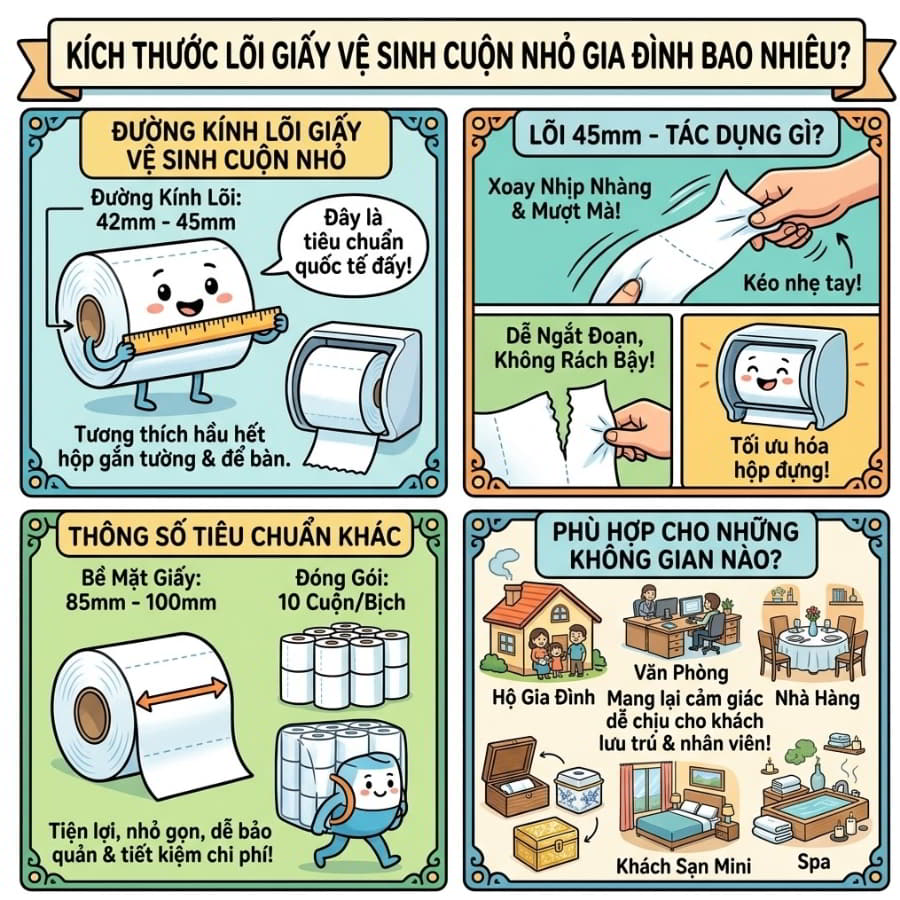 Kích Thước Lõi Giấy Vệ Sinh Cuộn Nhỏ Gia Đình Bao Nhiêu?