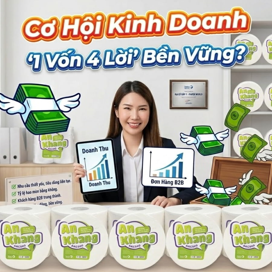 Bên cạnh đó, nhu cầu tiêu dùng là vô hạn. Một nhà hàng, một tòa nhà văn phòng tiêu thụ hàng chục, hàng trăm cuộn giấy mỗi tháng. Khi bạn đã chốt được một khách hàng B2B (khách hàng doanh nghiệp), họ sẽ nhập hàng của bạn đều đặn hàng tuần, hàng tháng trong suốt nhiều năm liền nếu chất lượng và giá cả ổn định. Chính vòng lặp tiêu dùng liên tục này tạo ra dòng tiền thụ động vững chắc, giúp bạn thu hồi vốn nhanh chóng và hiện thực hóa câu nói “1 vốn 4 lời” một cách bền vững nhất.
