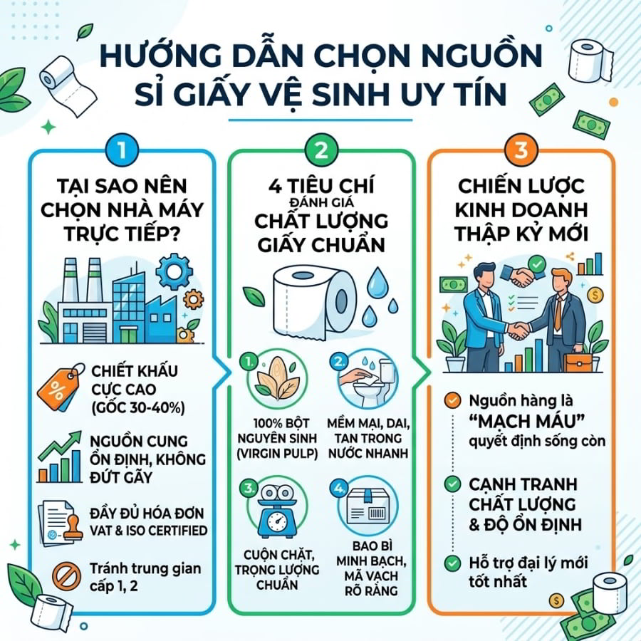 Bài viết dưới đây được đúc kết từ 10 năm quan sát và đồng hành cùng hàng ngàn nhà phân phối trên toàn quốc. Những kinh nghiệm mở đại lý giấy vệ sinh thực chiến này sẽ giúp bạn vẽ ra một lộ trình khởi nghiệp rõ ràng, né tránh rủi ro tồn kho và hoàn vốn trong thời gian ngắn nhất.