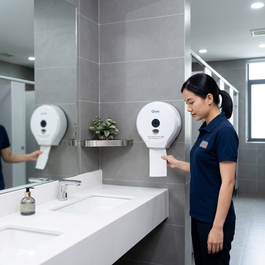 Ngược lại, khi các nhà quản lý áp dụng chiến lược mua sỉ vật tư tiêu hao vệ sinh bài bản, dòng chảy công việc sẽ thay đổi hoàn toàn. Việc ký kết hợp đồng cung ứng dài hạn giúp cố định mức giá, tránh được bão lạm phát từ thị trường nguyên vật liệu. Hơn thế nữa, các sản phẩm chuyên dụng, điển hình như giấy vệ sinh công nghiệp, được thiết kế đặc thù để kiểm soát định mức sử dụng. Thay vì nhân viên bảo trì phải chạy đôn chạy đáo thay giấy mỗi giờ, một hệ thống đồng bộ sẽ tự động hóa trải nghiệm này. Hàng loạt doanh nghiệp sản xuất đã chứng minh rằng, việc tập trung đầu tư đúng ngay từ đầu vào nhóm vật tư này giúp nâng tầm trải nghiệm môi trường làm việc, củng cố hình ảnh chuyên nghiệp và đặc biệt là thỏa mãn xuất sắc các bộ tiêu chuẩn ESG (Môi trường – Xã hội – Quản trị) đang rất khắt khe hiện nay.