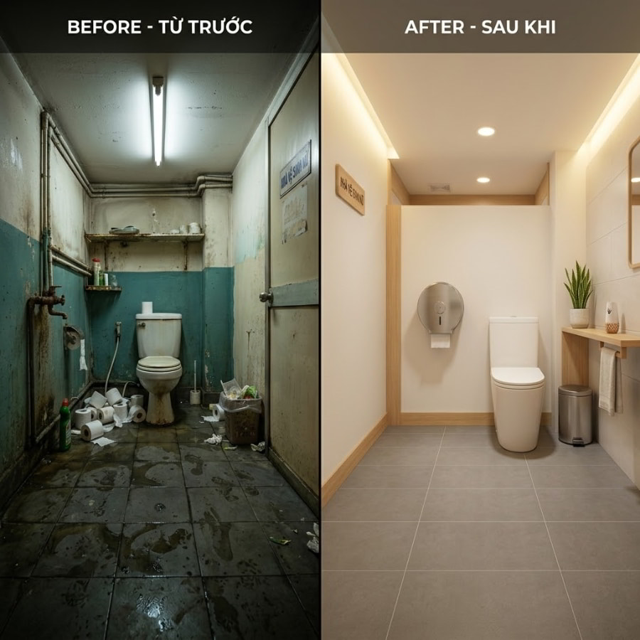 Đồ ăn ngon đến mấy nhưng nhà vệ sinh nhơ nhớp, bốc mùi và lúc nào cũng trong tình trạng “hết giấy” thì 90% thực khách sẽ không bao giờ quay lại. Đó là một sự thật tàn khốc trong kinh doanh F&B. Thế nhưng, khi nhắc đến việc nâng cấp nhà vệ sinh quán ăn bình dân, nhiều chủ quán lại lắc đầu ngán ngẩm vì sợ phải đập gạch, lát sàn, đóng cửa nghỉ bán mất doanh thu và tốn kém hàng chục triệu đồng. Đừng lo lắng! Bài viết này sẽ bật mí cho bạn cách “lột xác” hoàn toàn khu vực nhạy cảm này chỉ với những thay đổi cực nhỏ về vận hành, không cần đập phá mà vẫn khiến khách hàng gật gù hài lòng.