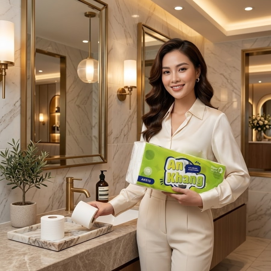 Trong ngành dịch vụ Horeca, mọi chi tiết nhỏ đều phản ánh đẳng cấp thương hiệu. Đối với giấy vệ sinh cho khách sạn và resort cao cấp, yếu tố thẩm mỹ và trải nghiệm người dùng luôn được đặt lên hàng đầu. Khách lưu trú mong muốn nhìn thấy những cuộn giấy tròn trịa, sang trọng, dập hoa văn tinh tế. Do đó, giấy vệ sinh có lõi, cao cấp (như dòng Japani với lụa 3 lớp, siêu mềm, dai, mịn) là lựa chọn tối thượng. Ngược lại, đối với giấy vệ sinh cho nhà hàng – nơi có lưu lượng khách ra vào toilet liên tục, việc sử dụng giấy không lõi (đặc biệt là dạng cuộn lớn) kết hợp với hộp đựng chuyên dụng có khóa sẽ giúp chủ quán cắt giảm đáng kể chi phí nhân sự dọn dẹp lõi rác và chống hao hụt hiệu quả.