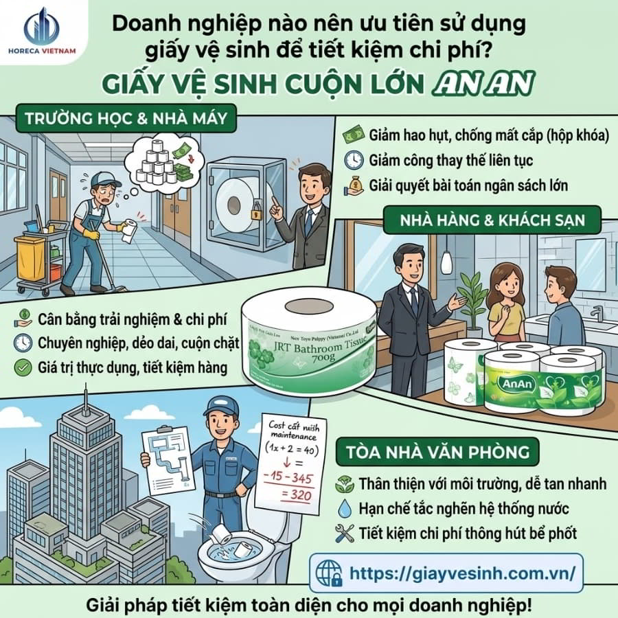 Để đảm bảo sức khỏe và nhận được mức giá chiết khấu tốt nhất, đặc biệt là với khách hàng doanh nghiệp B2B, việc tìm kiếm nhà phân phối trực tiếp là bắt buộc. Horeca Việt Nam tự hào là đơn vị cung cấp giấy vệ sinh giá sỉ chính hãng, uy tín hàng đầu. Không chỉ cung cấp đầy đủ hóa đơn, chứng từ kiểm định chất lượng, Horeca Việt Nam còn tư vấn lộ trình sử dụng vật tư tiêu hao phù hợp nhất với đặc thù của từng doanh nghiệp, đảm bảo bạn cắt giảm được đến 30% chi phí vận hành mà vẫn duy trì môi trường vệ sinh, an toàn tuyệt đối.
