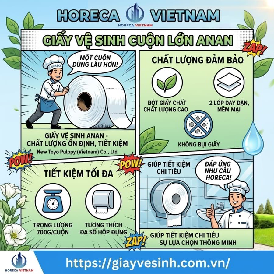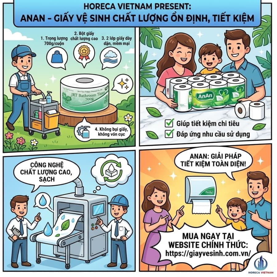 Các cơ sở kinh doanh F&B và lưu trú luôn phải cân bằng giữa trải nghiệm khách hàng và chi phí vận hành. Lựa chọn giấy vệ sinh cho nhà hàng hay giấy vệ sinh cho khách sạn ở phân khúc giá tốt giúp giảm thiểu gánh nặng chi phí hàng tháng. Để gia tăng sự chuyên nghiệp mà vẫn tiết kiệm, nhiều đơn vị đã chuyển sang sử dụng giấy vệ sinh cuộn lớn An Khang – một giải pháp nâng cấp hơn nhưng vẫn kế thừa triết lý giá trị thực dụng, cung cấp lõi giấy khít, cuộn chặt và độ bền dẻo dai phù hợp với hộp đựng chuẩn Horeca.