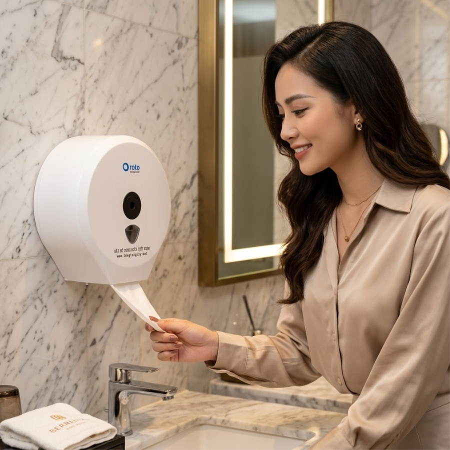 Bên cạnh bài toán kinh tế cho chủ đầu tư, lý do sâu xa giải thích tại sao khách sạn dùng giấy cuộn lớn chính là mong muốn hoàn thiện trải nghiệm khách hàng (Guest Experience). Khách hàng hiện đại rất tinh tế; họ đánh giá chất lượng của một khách sạn 4-5 sao ngay từ những cú chạm nhỏ nhất vào vật dụng trong phòng tắm.