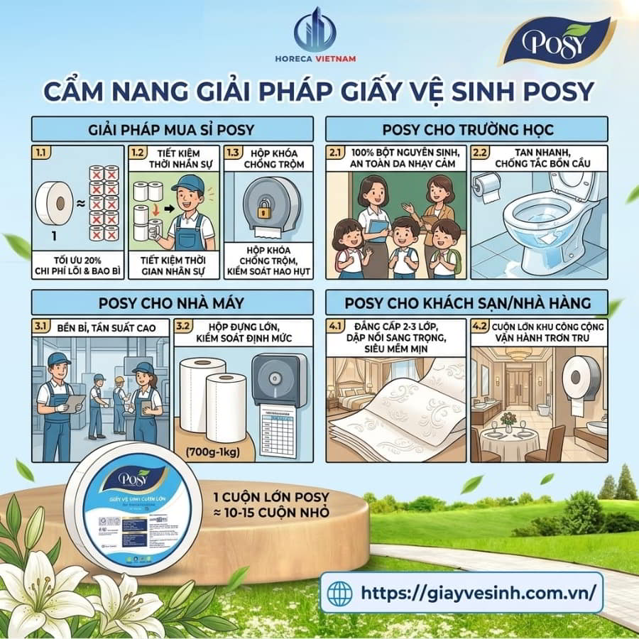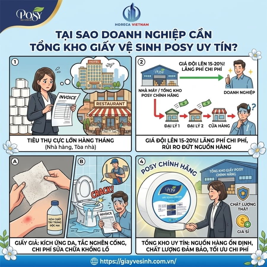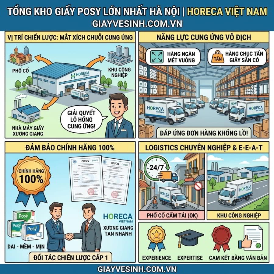 Tối ưu hóa ngân sách vận hành của bạn ngay hôm nay! Đừng để doanh nghiệp thất thoát hàng chục triệu đồng mỗi năm chỉ vì những cuộn giấy kém chất lượng. Liên hệ ngay với Horeca Việt Nam – Tổng Kho Giấy Posy Lớn Nhất Hà Nội để nhận báo giá sỉ, mẫu thử miễn phí và tài trợ hộp đựng cao cấp!