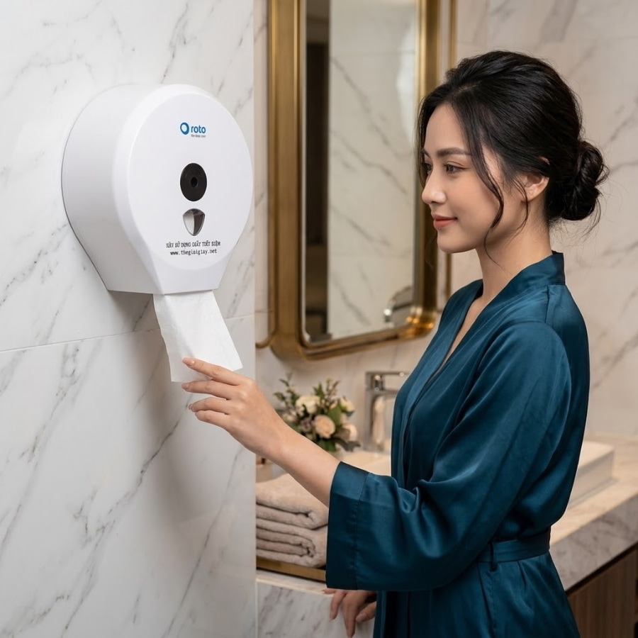 Trong ngành công nghiệp giấy, chất liệu giấy nguyên sinh luôn có giá cao hơn giấy tái chế, nhưng bù lại chúng có độ trắng sáng tự nhiên, dai hơn và tuyệt đối an toàn cho làn da nhạy cảm. Các xưởng sản xuất hàng đầu đều cam kết sử dụng 100% bột giấy nguyên sinh, không chứa hóa chất tẩy trắng độc hại (như Clo) để bảo vệ sức khỏe người dùng. Một khách sạn định vị phân khúc cao cấp không thể đặt những cuộn giấy thô ráp, tối màu trong phòng tắm của mình. Do đó, tiêu chí về thành phần nguyên sinh là điều kiện kiên quyết.
